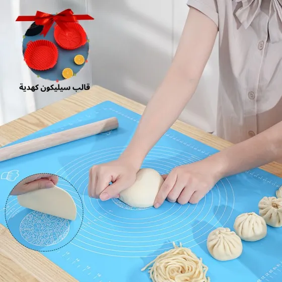 حصيرة عجين سيليكون المضادة للالتصاق ورائحة البيض مثالية لفرد العجين بكل سهولة! هدية مميزة: قالب سيليكون مجاني مع كل طلب! 🎁 اطلب الآن واستمتع بمطبخ أكثر احترافية.